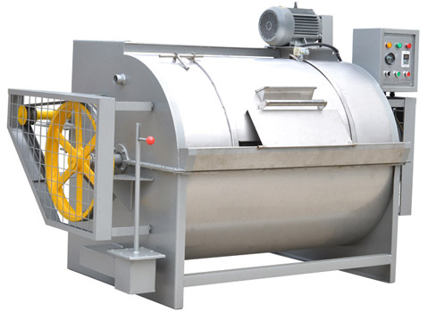 水洗機(jī)是滾筒型,內(nèi)、外殼采用優(yōu)質(zhì)不銹鋼制作而成,平整光滑、耐腐蝕、不損傷織物。水洗機(jī)由內(nèi)筒、外筒、電機(jī)、支撐總成、傳動總成、電器總成組成。結(jié)構(gòu)合理、安裝使用方便。水洗機(jī)工作原理:由頂置電機(jī)、三角膠帶、帶動傳動總成,使內(nèi)筒作正反轉(zhuǎn)運(yùn)轉(zhuǎn),通過織物與織物、織物與內(nèi)筒壁的相互摩擦,達(dá)到洗滌效果。機(jī)器內(nèi)置過熱、過載裝置、定時裝置、正反轉(zhuǎn)控制裝置。水洗機(jī)外筒門設(shè)有安全裝置,若運(yùn)行中門被打開,機(jī)器立即停止運(yùn)轉(zhuǎn),確保機(jī)器、操作人員的安全。按容量大小分為:15kg、30kg、50kg、70kg、100kg、150kg、200kg等系列。該容量為干衣物的重量。