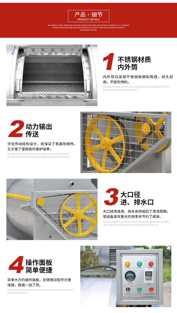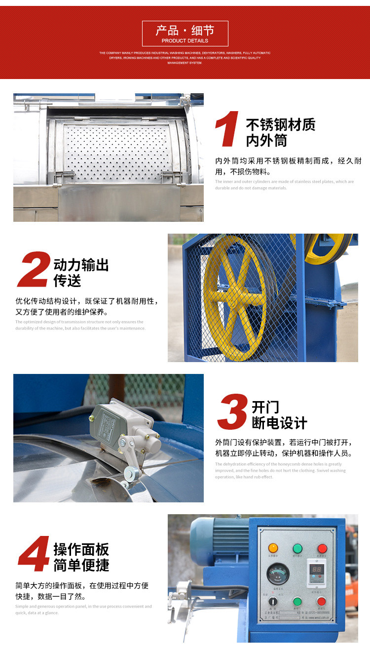 我公司專注于工業(yè)洗衣機(jī),脫水機(jī),水洗機(jī)等洗滌設(shè)備的生產(chǎn),同時我司為特殊用戶訂制非標(biāo)洗滌機(jī)械。熱忱歡迎廣大客戶來電咨詢產(chǎn)品信息。