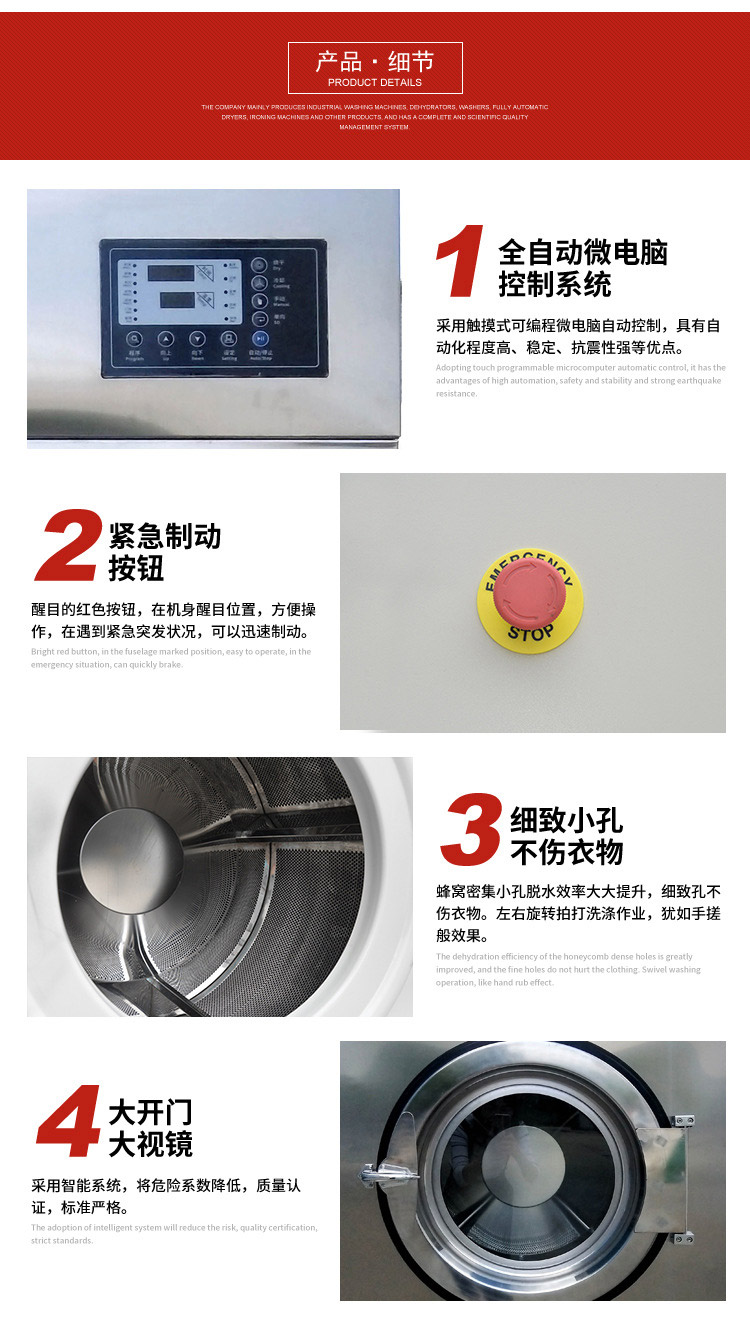 我公司專注于工業(yè)洗衣機(jī),脫水機(jī),水洗機(jī)等洗滌設(shè)備的生產(chǎn),同時(shí)我司為特殊用戶訂制非標(biāo)洗滌機(jī)械。熱忱歡迎廣大客戶來電咨詢產(chǎn)品信息。