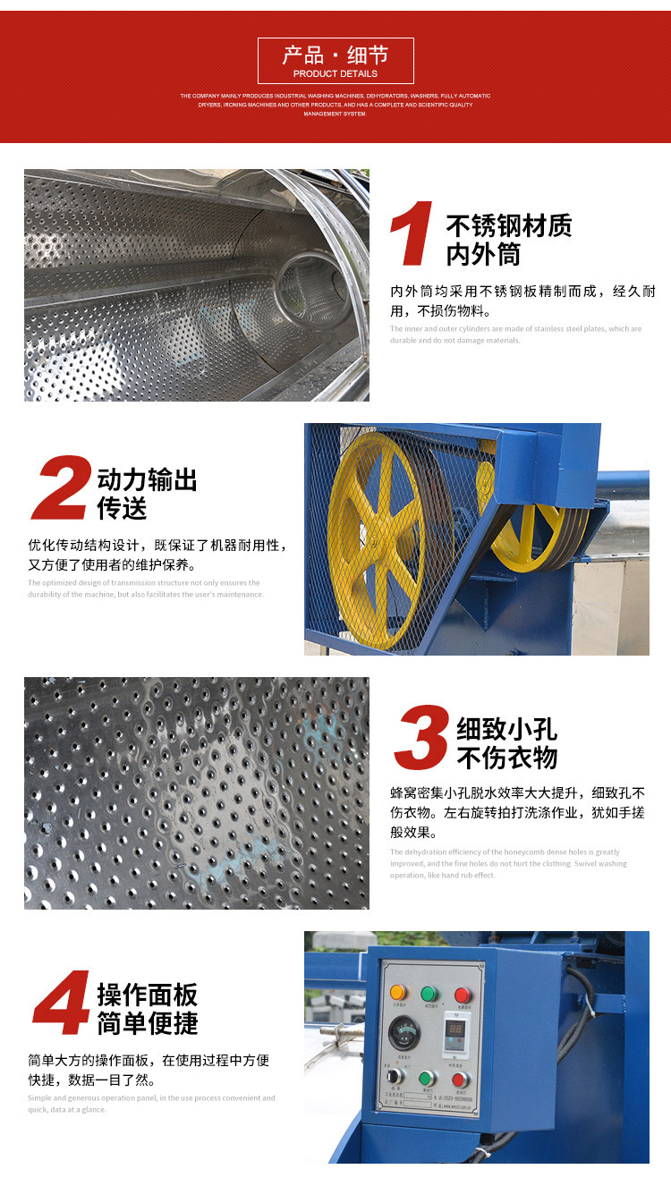 備注:濾布清洗機按容量大小分為:15kg、30kg、50kg、70kg、100kg、150kg、200kg。濾布清洗機型號按容量分,此處的容量是指干衣物的重量,不含水。